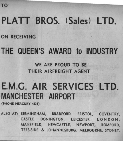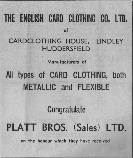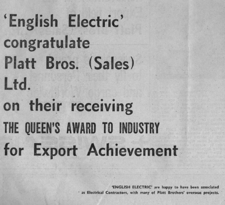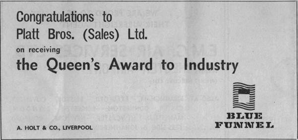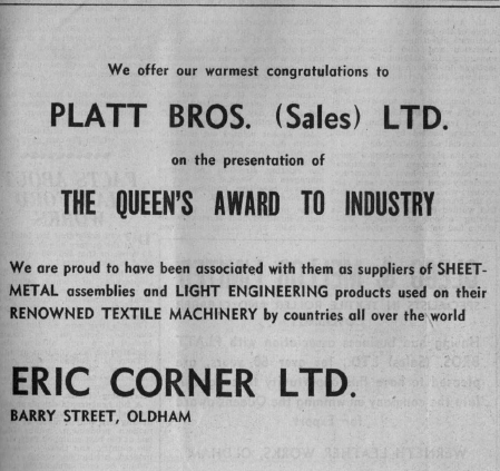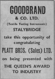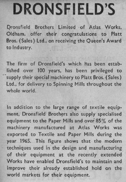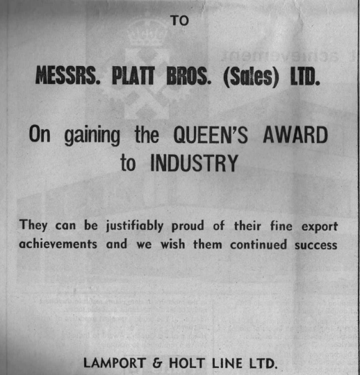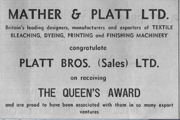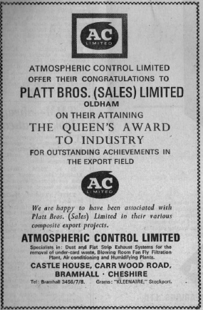 An Oldham Evening Chronicle Supplement to commemorate the achievement of Platt Bros. (Sales) Ltd