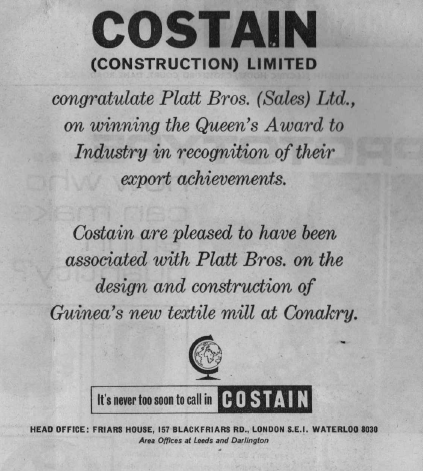 To justify this claim, Stone-Platt Industries have, in recent years, spent over £8 million on re-equipping their textile machinery factories. As a result, the factories have modern production techniques, flowlines, equipment and craftsmen.