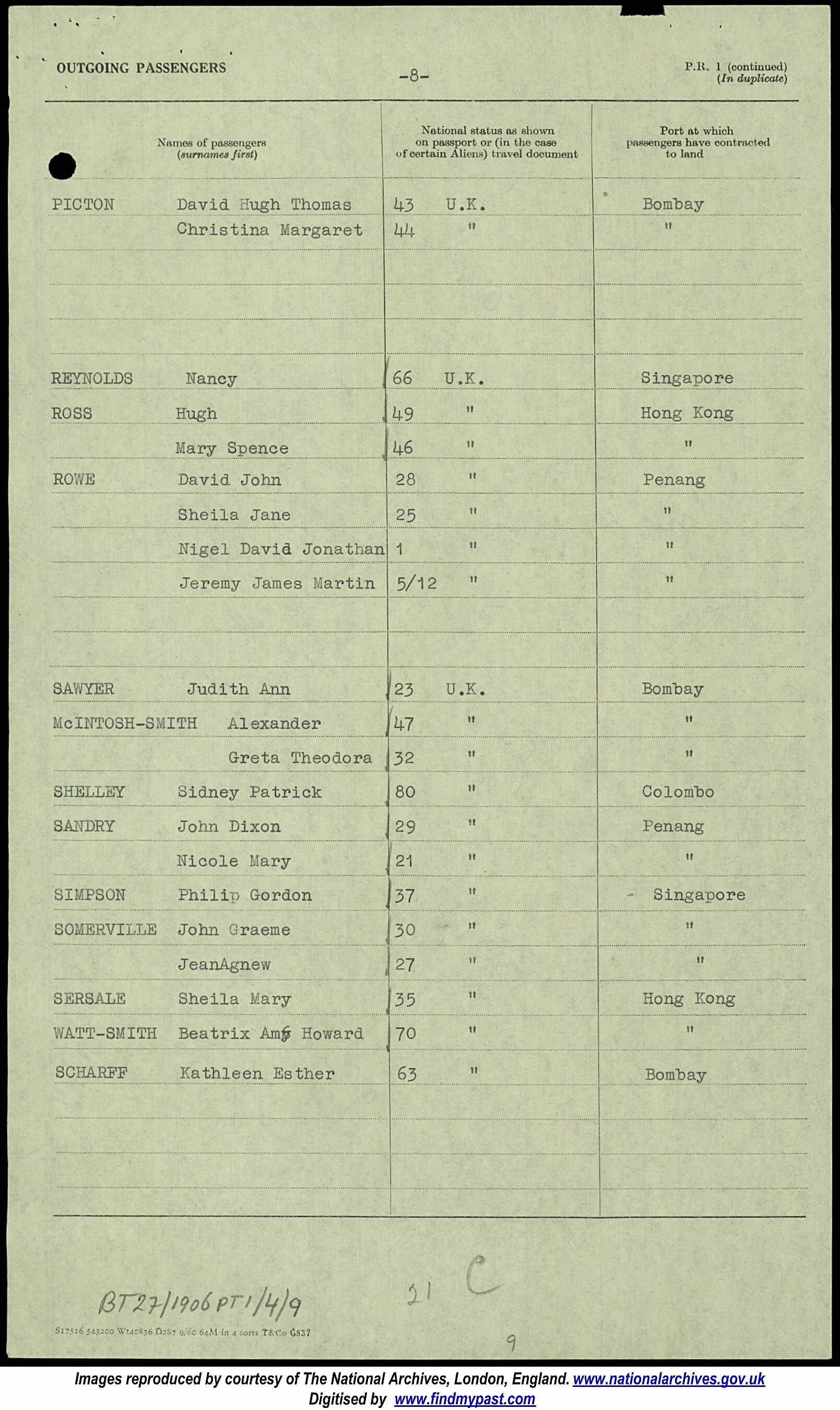 On 11 Nov 1960, left Southampton for Singapore with wife Jean Agnew Somerville (nee Wallace).