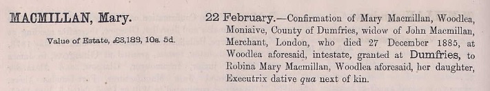 | Mary Macmillan Born: 1829 Died: 27 DEC 1885 Woodlea, Moniaive