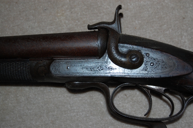 Inscription of 'L Bridge' on 12 bore shot gun.