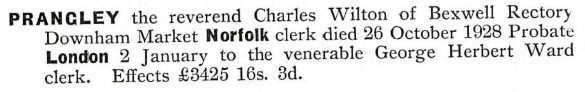 Lived at Potter Heigham and in 1911 moved to Bexwell Rectory, Downham Market, Norfolk.
