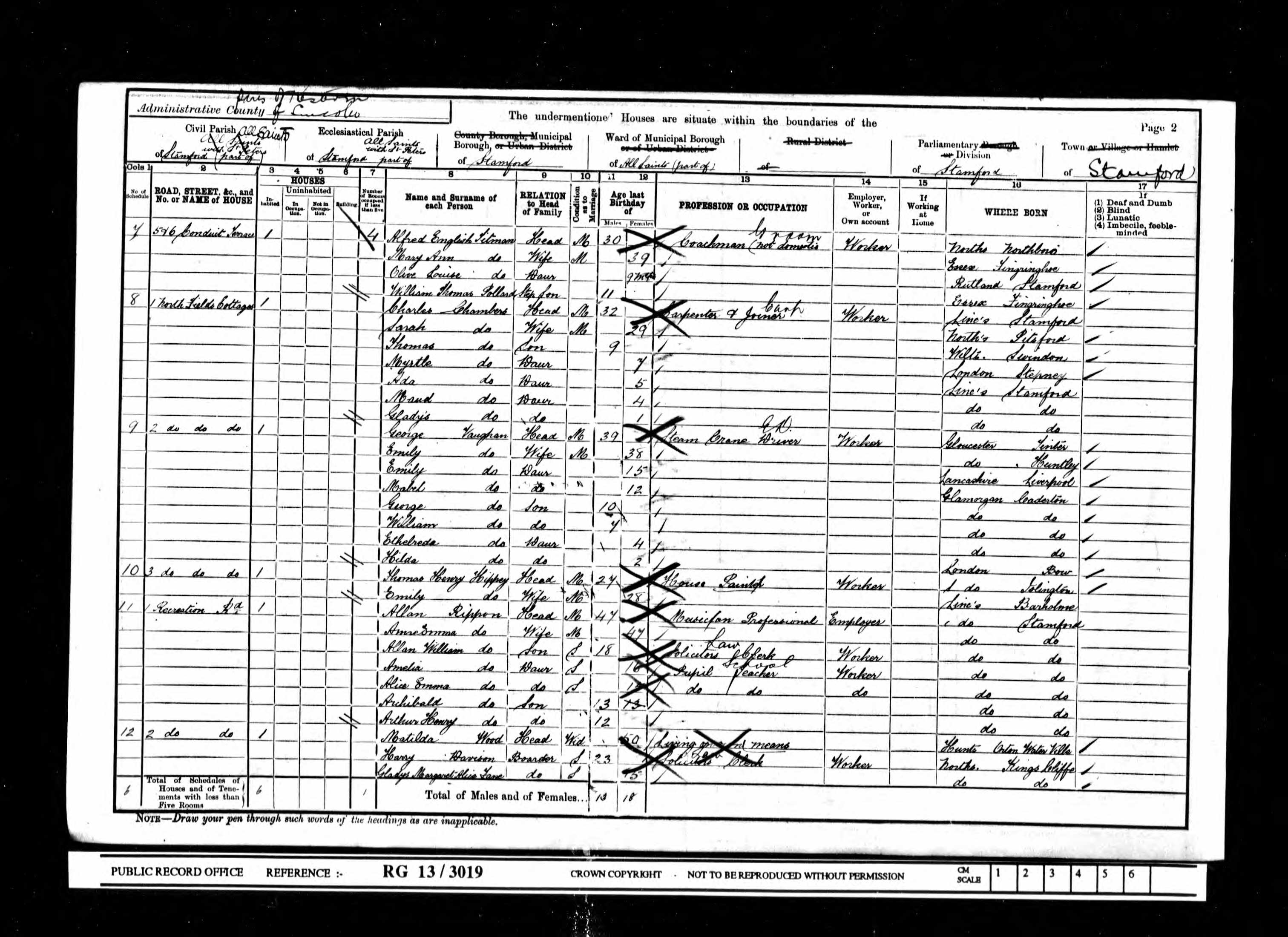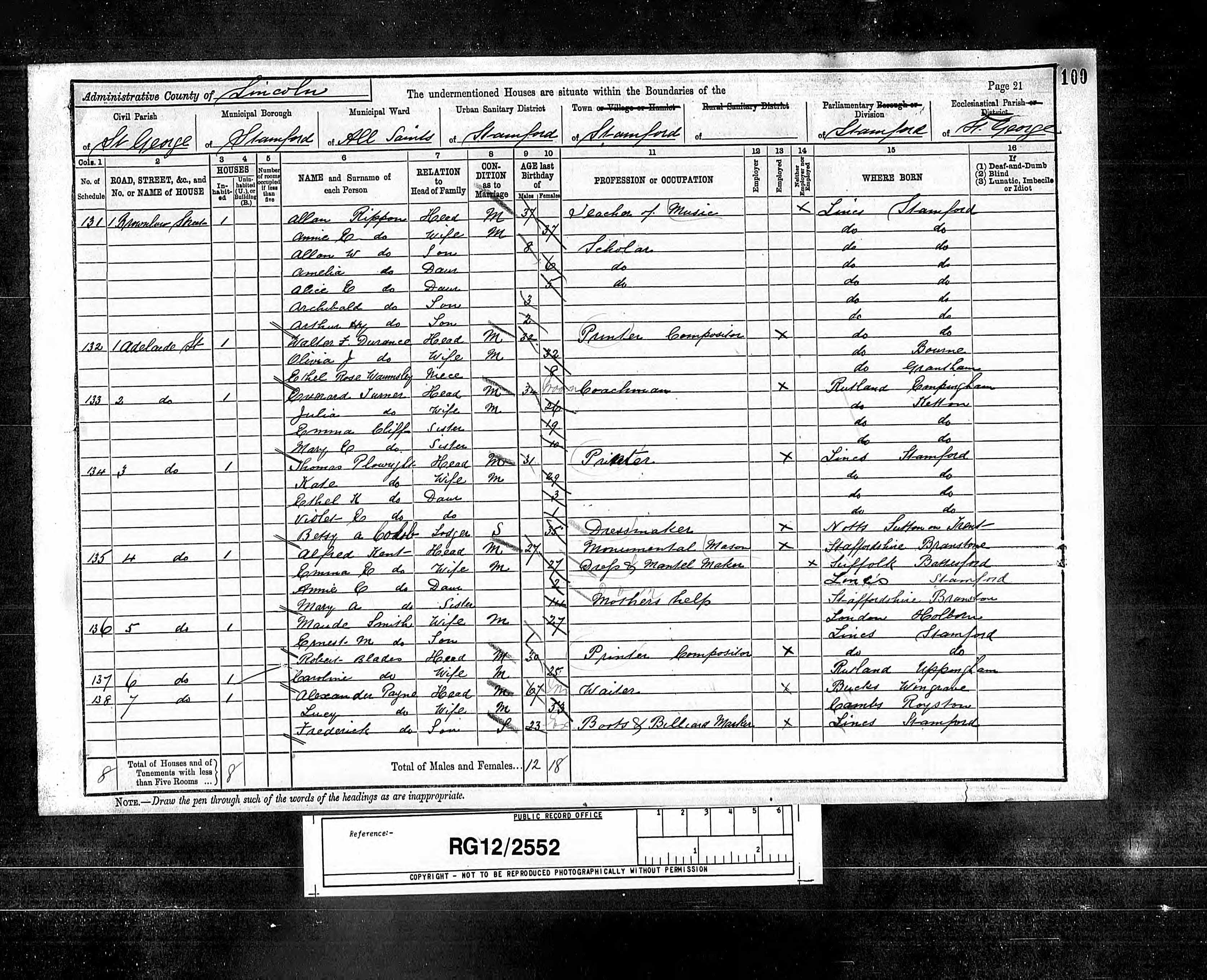 In 1901, living at No 1 Recreation Road, Stamford, Lincs. Law Clerk aged 18.