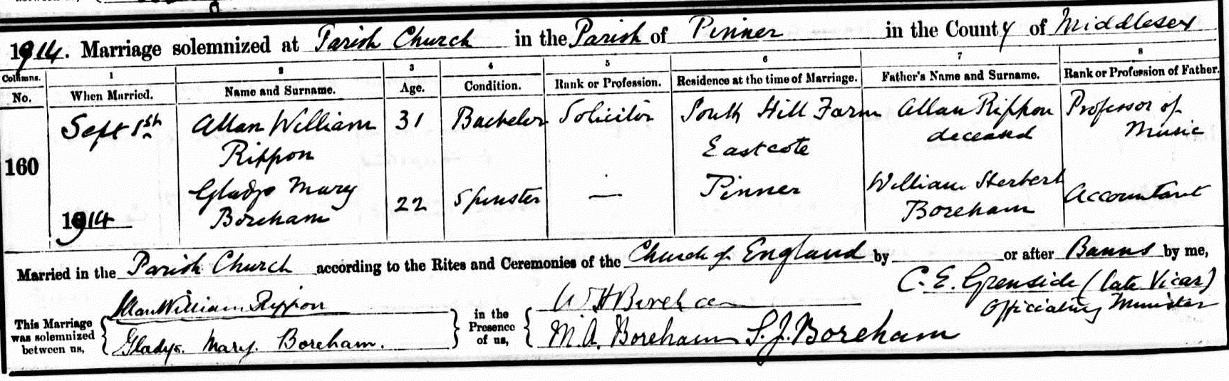 Gladys Mary Boreham 1 SEP 1914 Pinner
