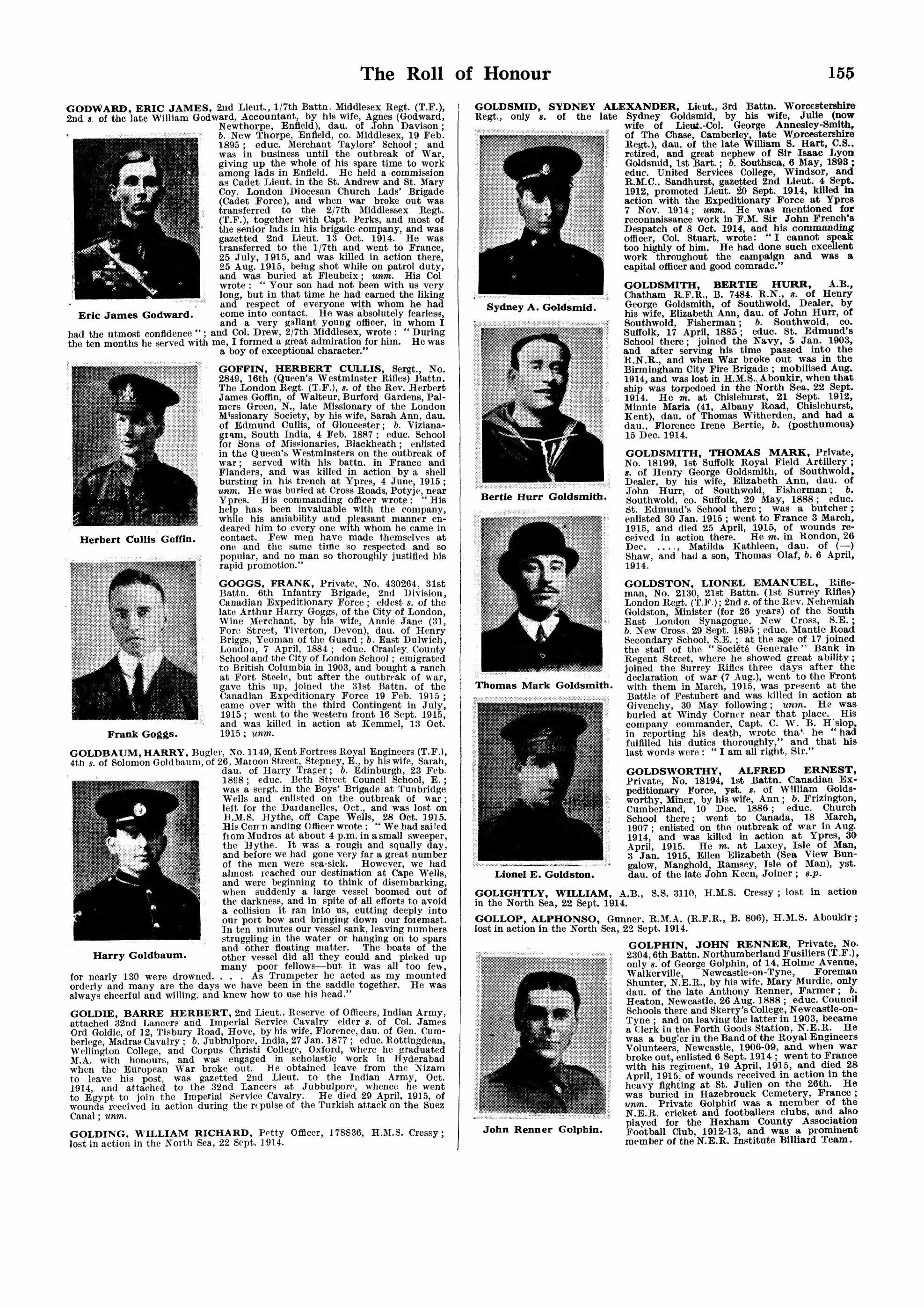 | Barré Herbert Goldie Born: 27 JAN 1877 Madhya Pradesh, India Died: 29 APR 1915 Ismalia, Egypt