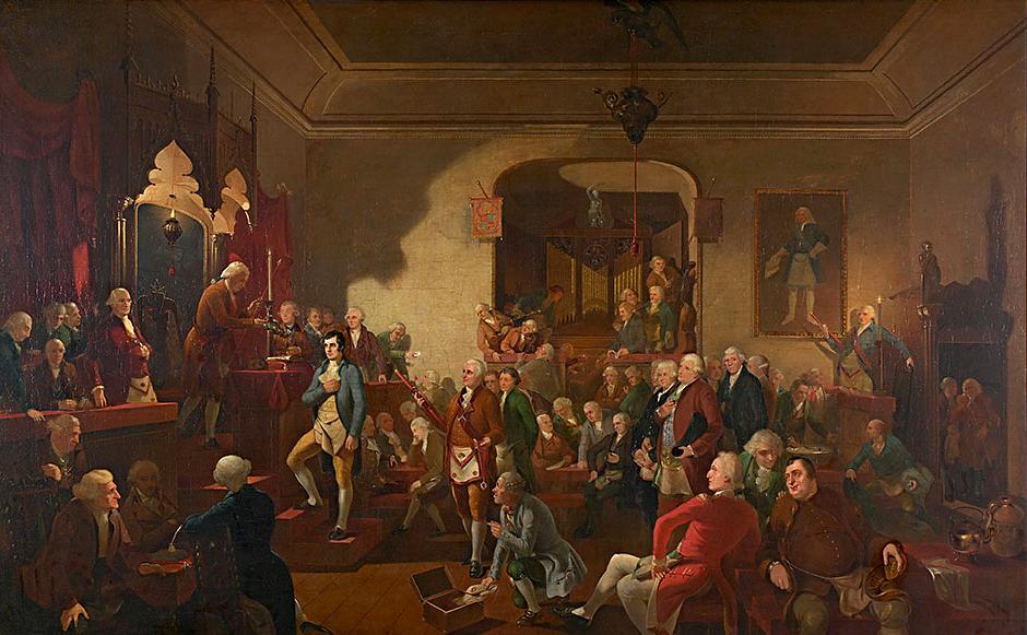 Alexander Fergusson of Craigdarroch was Master of Lodge Canongate Kilwinning from 1784 to 1787 and is seen in the painting handing the Laurel Wreath to Burns. He was an Advocate (Barrister) and his Edinburgh residence was at 6 St David Street in the recently constructed New Town of Edinburgh.