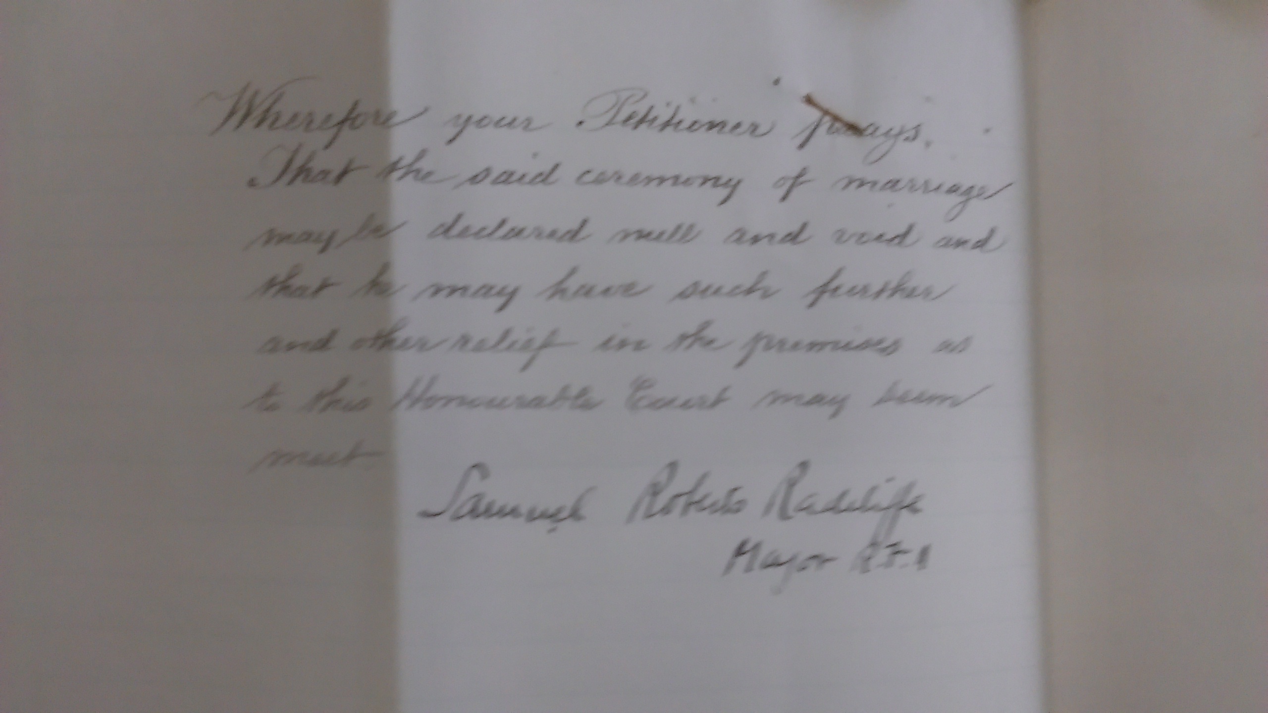 Transcription of Samuel Roberts Radcliffe Divorce Petition