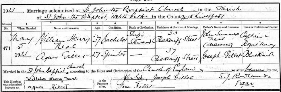 Agnes Gillet 5 MAY 1921 Toxteth Park