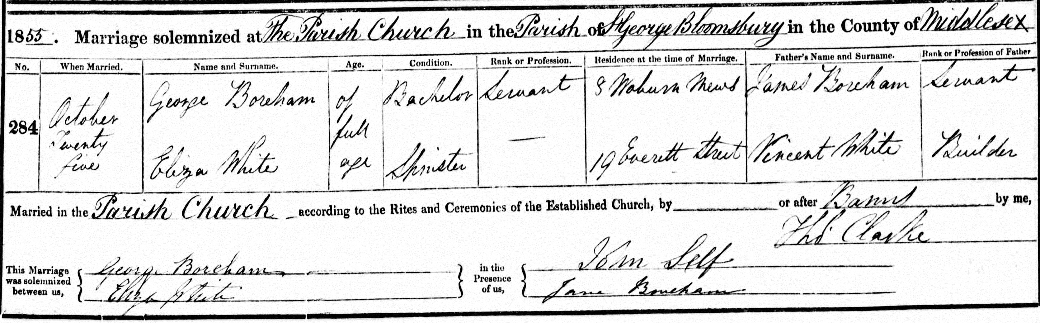 Eliza White 25 OCT 1855 St George, Bloomsbury