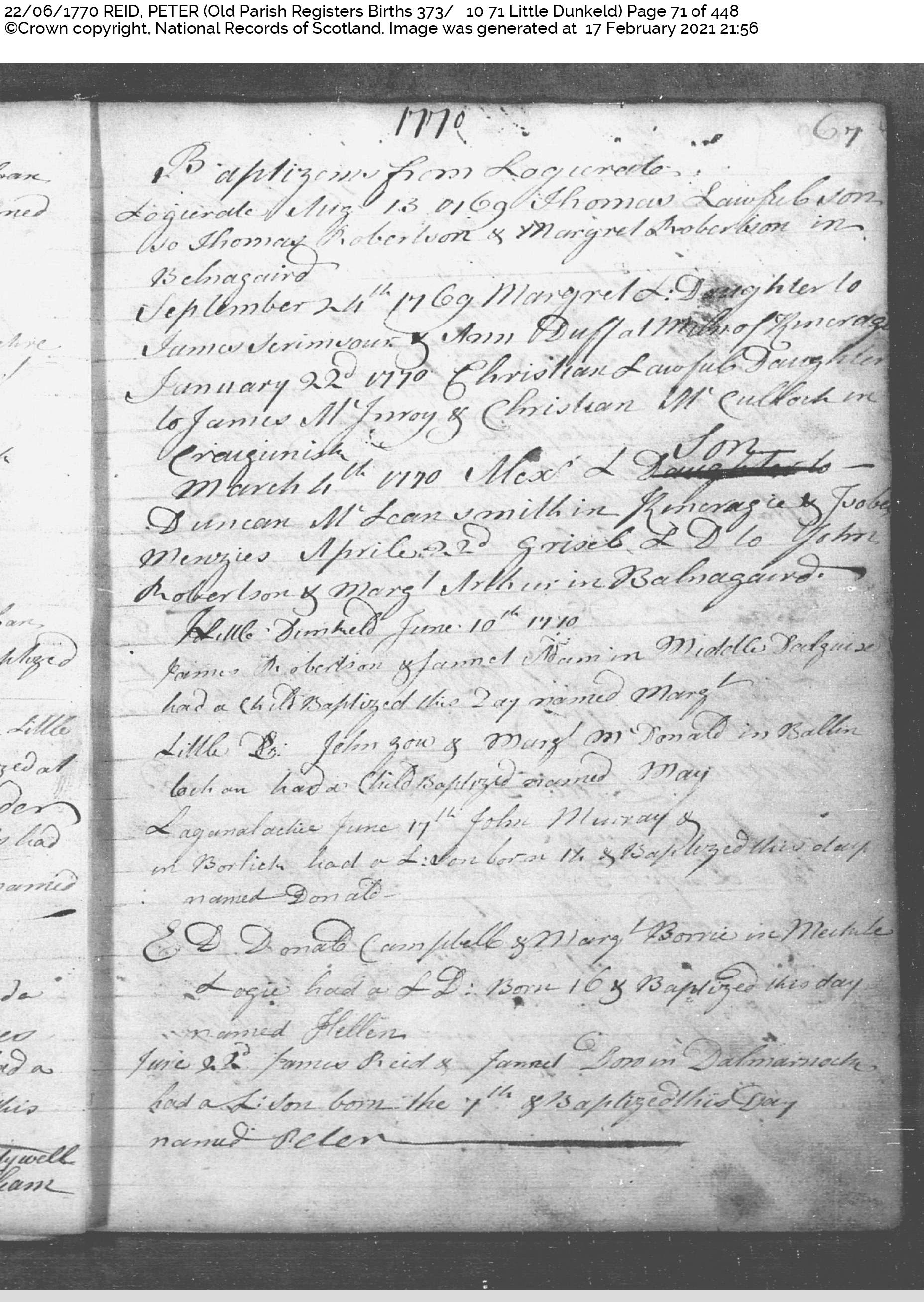 7 JUN 1770 Dalmarnock, Little Dunkeld, Perthshire