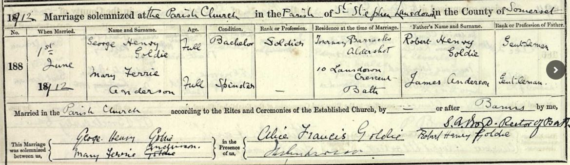 Mary Ferrie Anderson 1 JUN 1912 St Stephen, Bath, Somerset, England