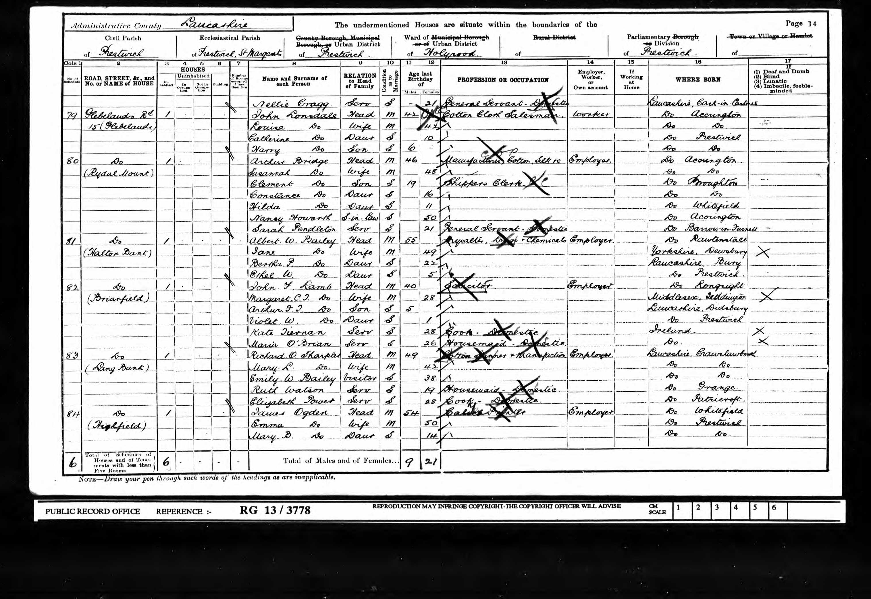 14 APR 1918 Prestwich aged 71