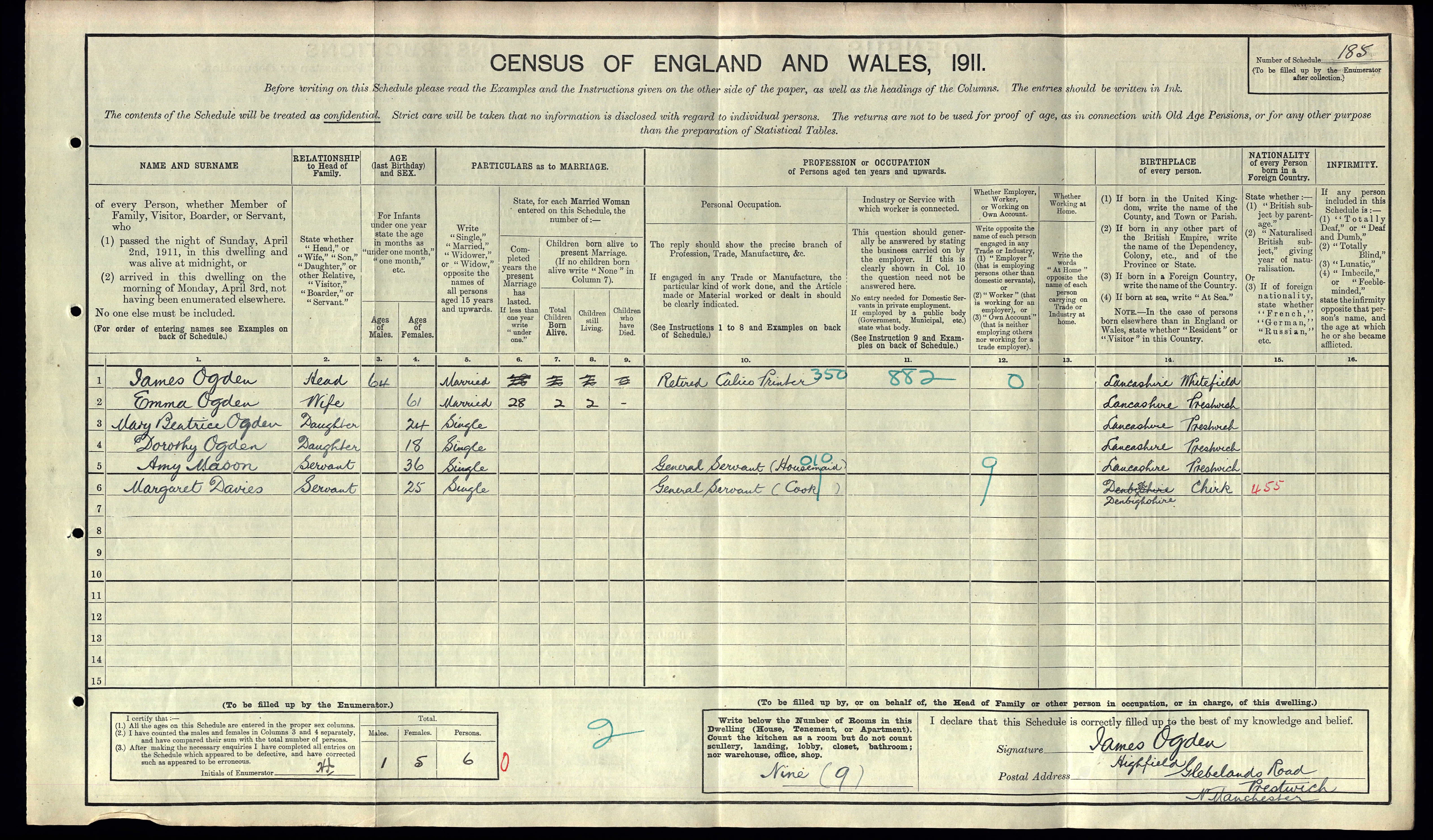 1911 census - Retired Calico printer