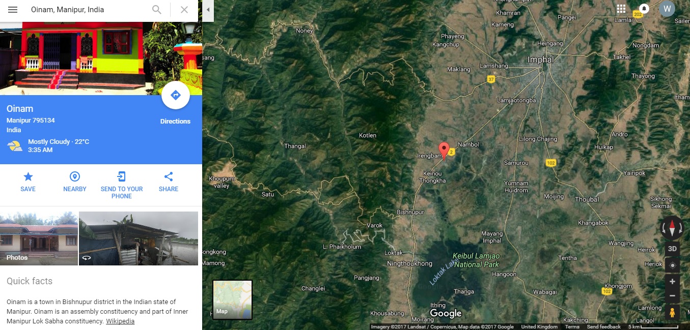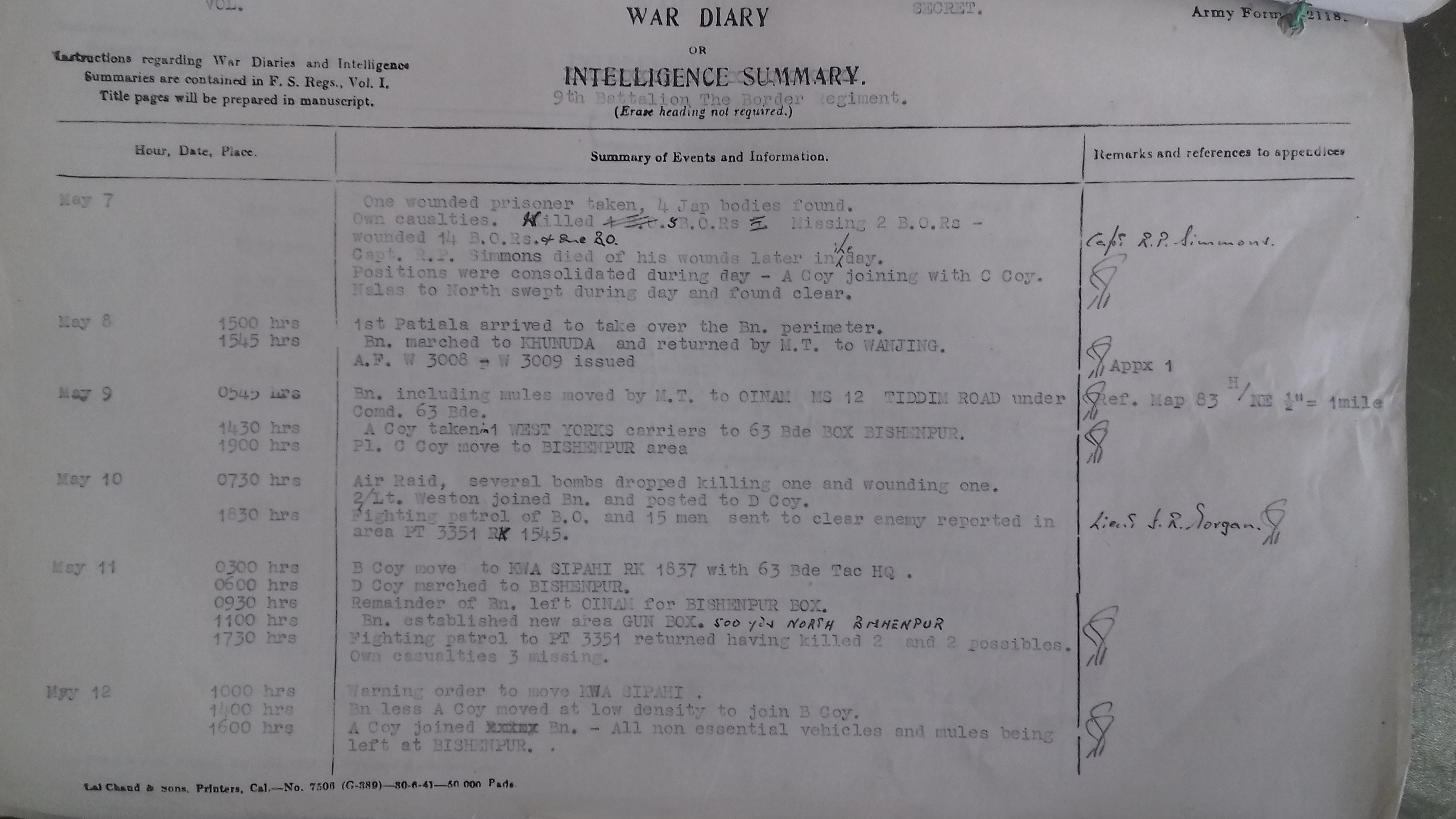 Oinam and Bishnupur - location of Battalion on May 9th and 11th respectively