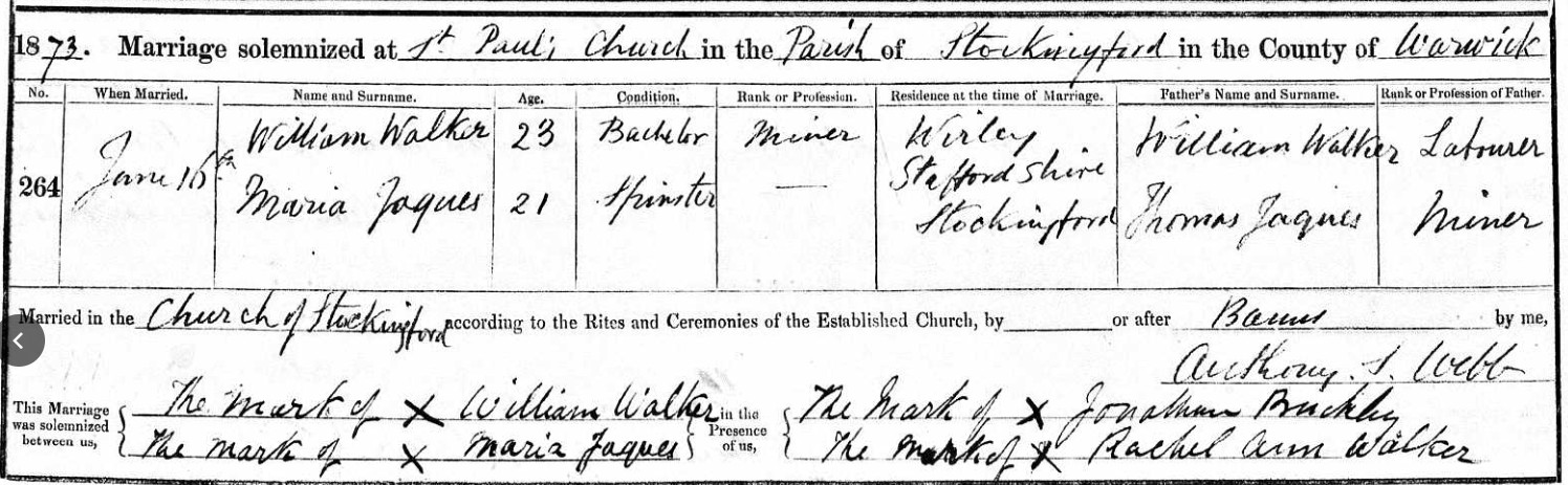 William Walker 16 JUN 1873 Stockingford, Warwickshire