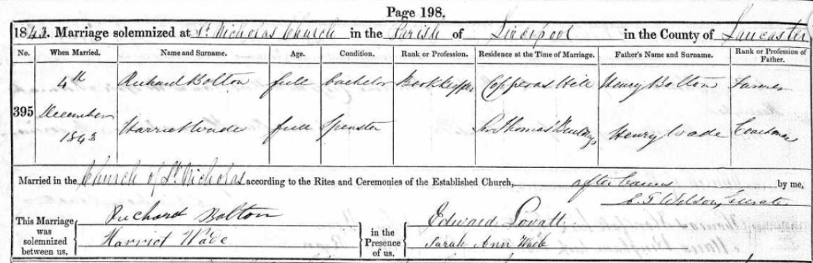 Richard Bolton 4 DEC 1843 St Nicholas Church, Liverpool