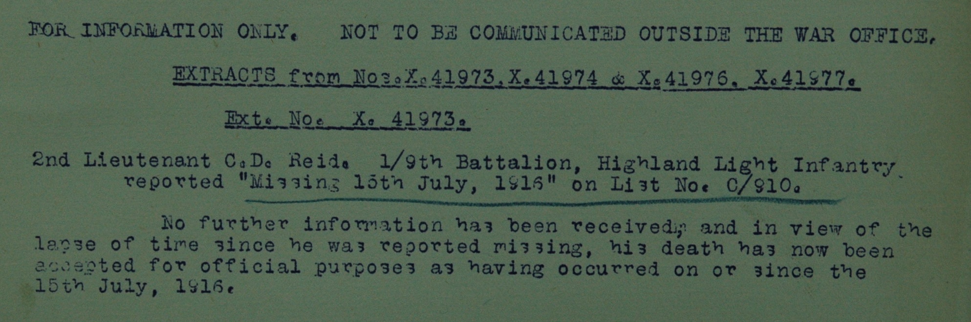Additional information: Son of James and Patricia Margaret Reid, of 15, Montgomerie Crescent, Glasgow.