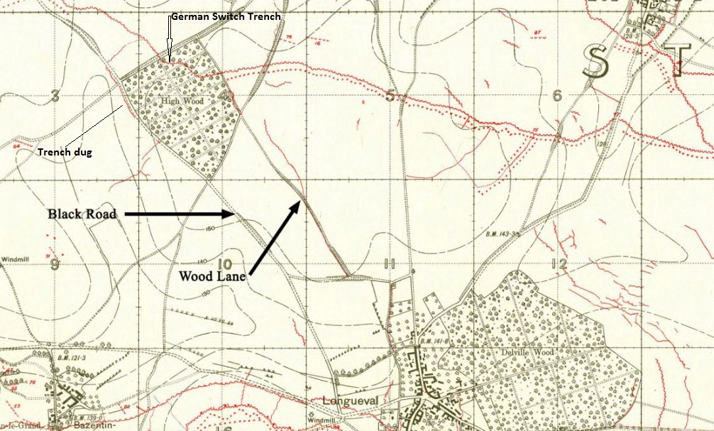 Our right was to start from the N.W. corner of High Wood (which we did not hold). The preliminary bombardment was to begin at 8.30am & the attack at 9am.