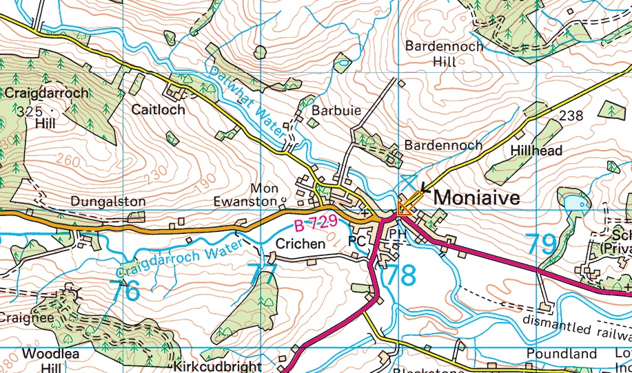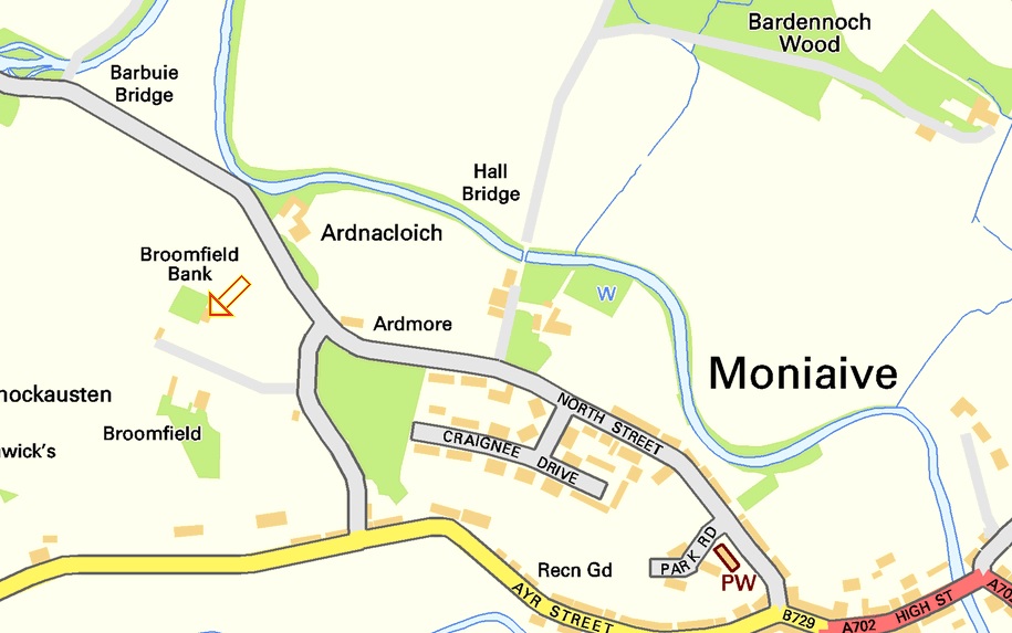 Map showing Bardennoch - farm of Thomas Moffat