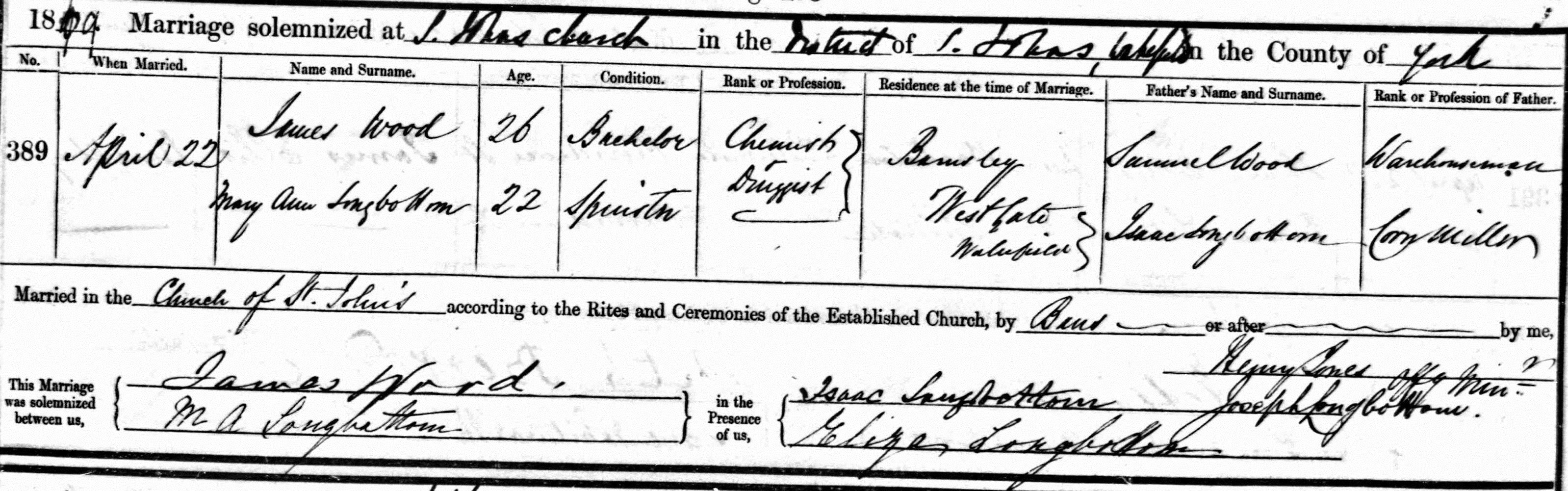 Mary Ann Longbottom 22 APR 1869 St John the Baptist, Wakefield, Yorkshire