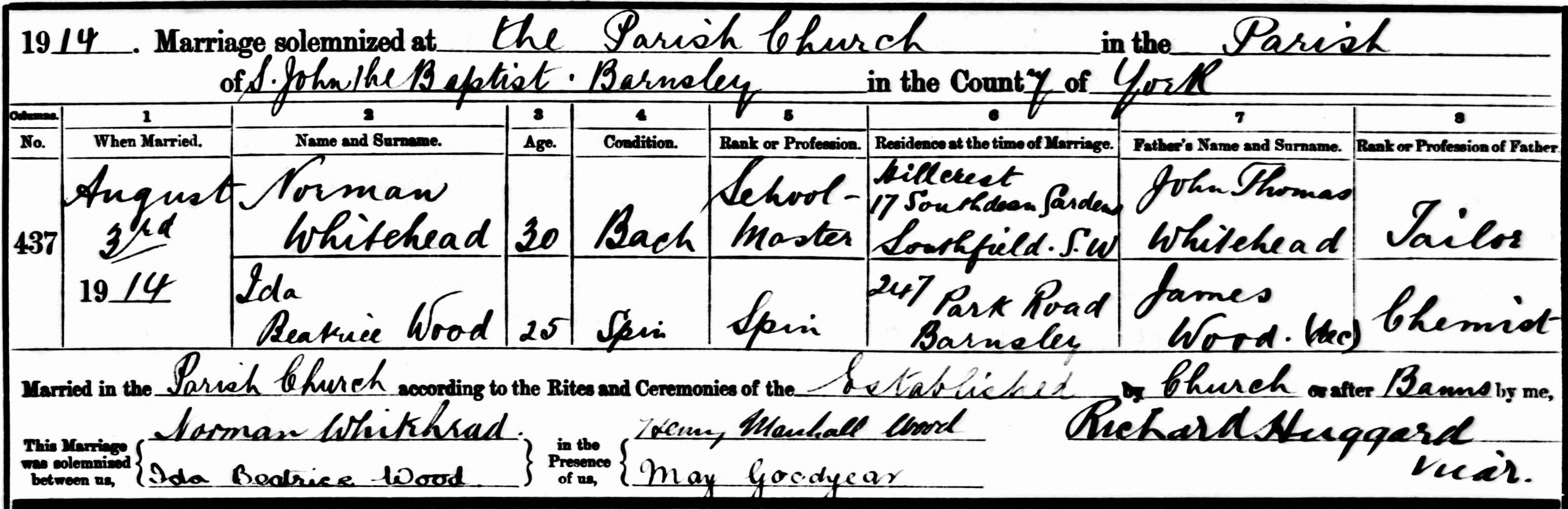 Ida Beatrice Wood 3 AUG 1914 St John The Baptist, Barnsley