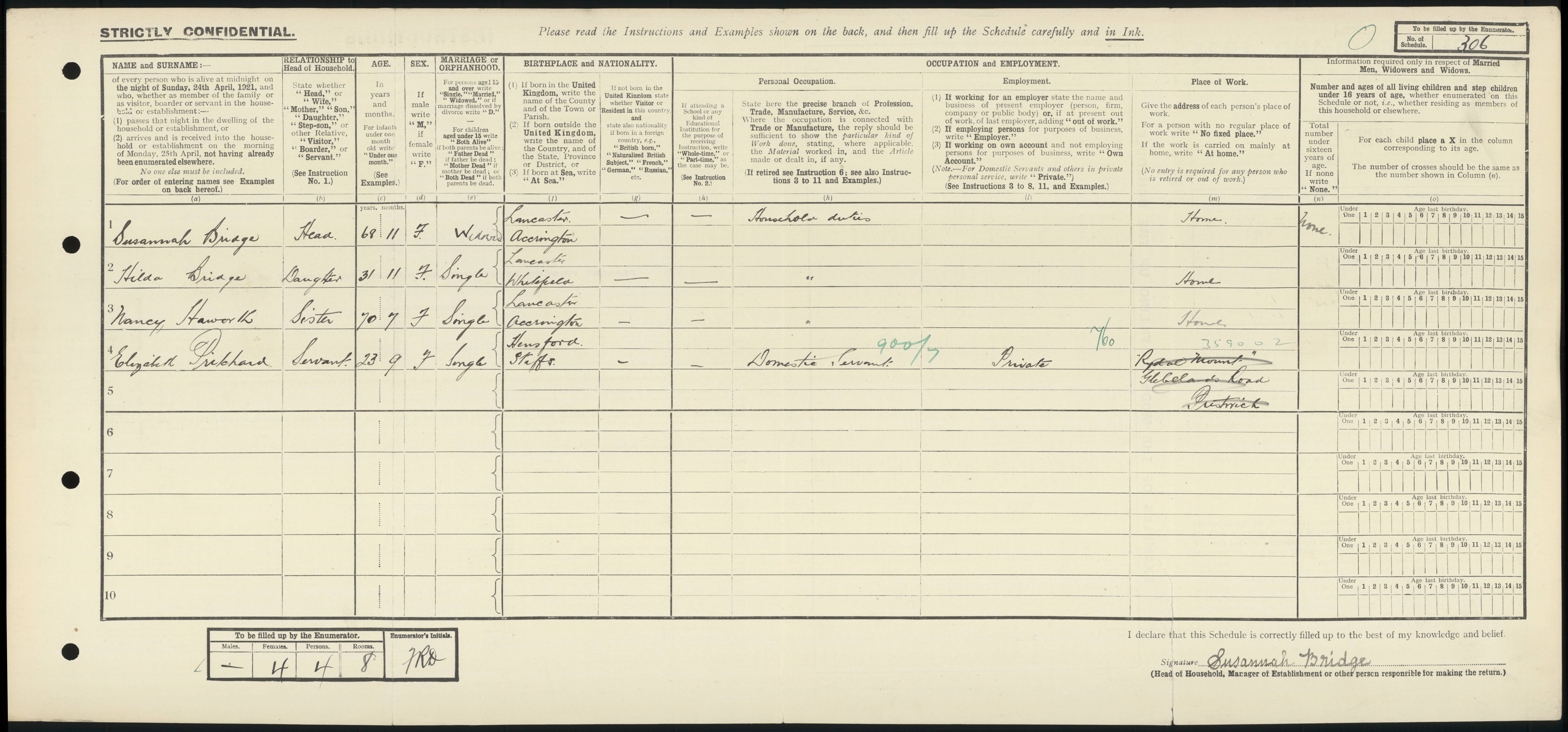 BRIDGE, SUSANNAH HEAD WIDOW F 58 LANCASHIRE ACCRINGTON