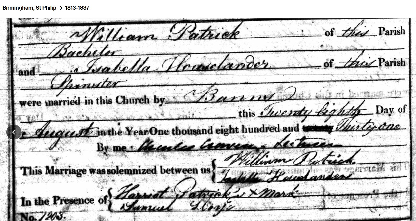 William Patrick 28 AUG 1831 St Philip's Church, Birmingham