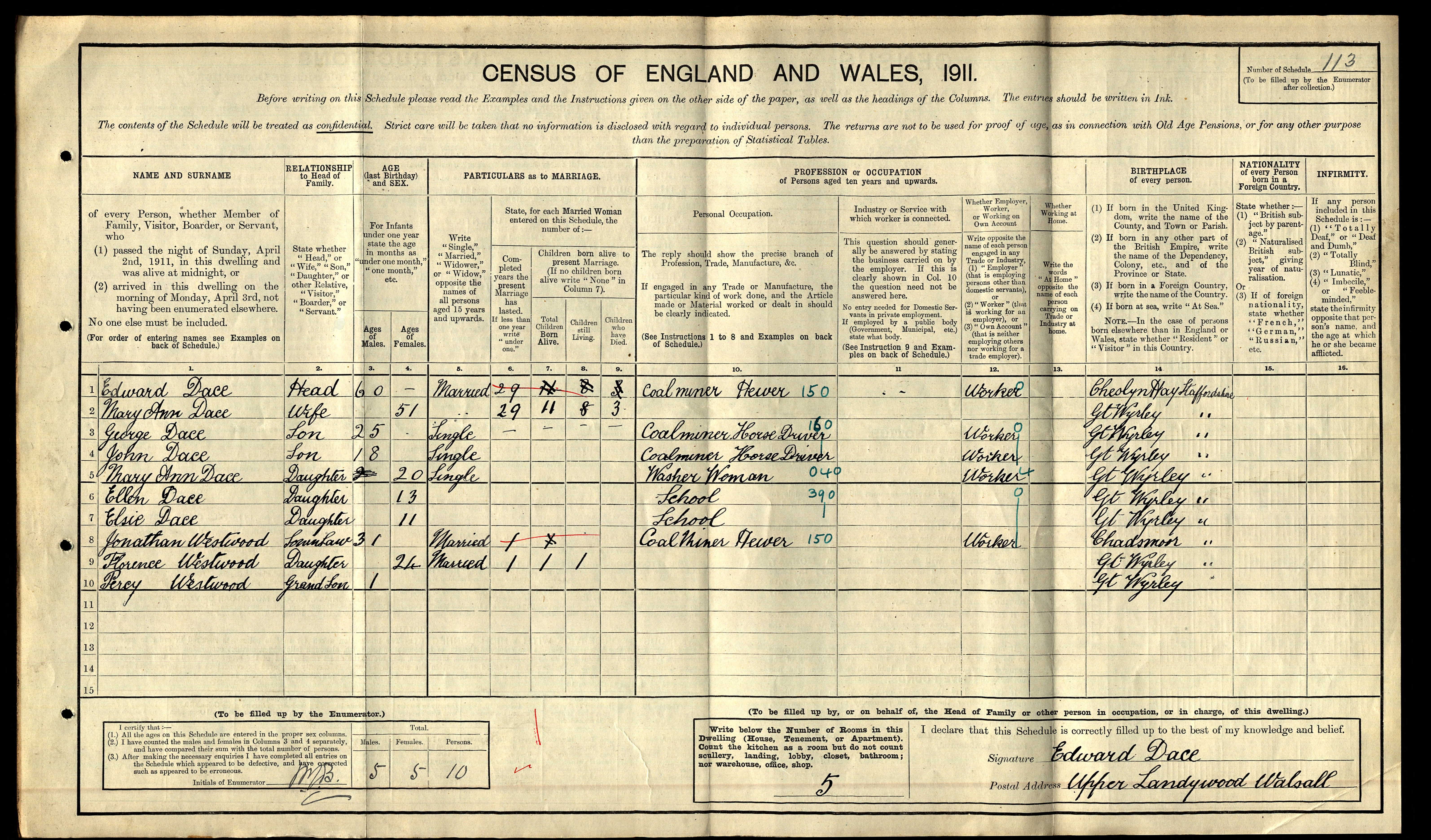 |  Edward  Dace Born: 1851 Cheslyn Hay, Staffordshire Died: