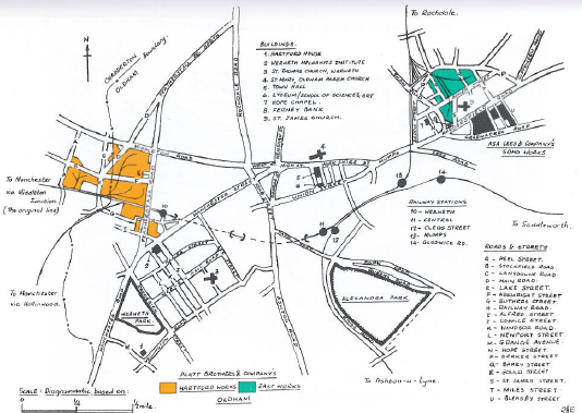 The circumstances of my life made it possible to learn the facts, at first hand, in North Wales, in Oldham, at the Company in Oldham and elsewhere and in Saddleworth. Nevertheless, I would be remiss in the extreme, if I did not acknowledge my profound indebtedness to those meticulous past historians of Oldham. Edwin Butterworth and Hartley Bateson, and to the late Ogwen Williams, one time archivist to the former Caernarfonshire County Council with whom incidentally, I was at school, and a host of others for the provision or corroboration of some of the detail pertaining to the earlier part of the story. My thanks are made to Gwynedd Archives Service, Oldham Evening Chronicle, Oldham Local Studies Library, Peter Fox of Greenfield and Lloyd Hughes, of Llanfairfechan, for the use of photographs from their collections.