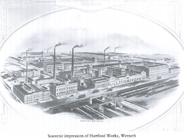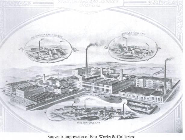 Pursuant to the Companies Act of 1862 Platt Brothers became, in 1868, a limited liability company. In time, the head office was transferred to Werneth, the name of the works there dropping the word “new” to become Hartford Works with the original works, at Greenacres moor, being renamed East Works. But the vernacular, as it always does, had long found the succinct nomenclature, it had opted or “t’new end” and “th’owd shop”.