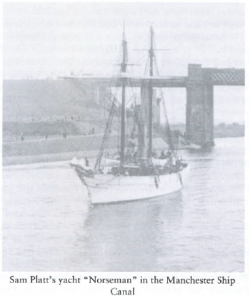 Sam Platt did not marry until 1884, when he was 38, and had had no inclination to own a country estate preferring, when not needing to be in residence at Werneth Park, to turn to the sea as the place to spend his leisure hours. This he did, often in the Mediterranean, cruising aboard his steam yacht, “Norseman”, a vessel larger than those owned by his brothers and so exquisitely fitted out that it was valued at £30 000. He and James Edward Platt had given strong backing to the construction of the Manchester Ship Canal and it was “Norseman”, with Sam Platt’s fellow directors of the Canal Company on board, which headed the convoy of ships through the canal when it was opened to commercial traffic on New Year’s Day 1894. Later, in the May of that year, when Queen Victoria officially opened the canal, Sam Platt’s yacht was the first vessel in the symbolic procession of ships to pass through Mode Wheel locks. On the fifth of September 1902 Sam Platt died on his yacht which, at the time, was moored at Bangor, he was 57.