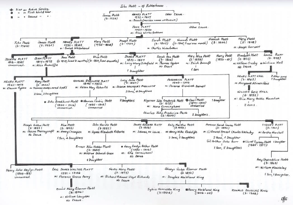 (The early chapel had been superseded by the church of St Chad and Saddleworth had become a parish). The broad Platt family was scattered about Saddleworth but for the purpose of this story no useful reason would be served by proceeding to include a detailed description of the connections between those Platts on whom the story centres and the broad family though, shortly, a key relationship is mentioned from which the connections can be established.