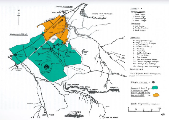 From 1872, while indifference and uncertainty surrounded Bryn-y-Neuadd, Henry Platt was busily engaged in developing and consolidating the estate at Gorddinog. He concluded arrangements, with his fellow trustees, for some of the best agricultural land at the western end of the Bryn-y-Neuadd estate to be transferred to Gorddinog, so that slightly more of that estate came to lie in Llanfairfechan (the